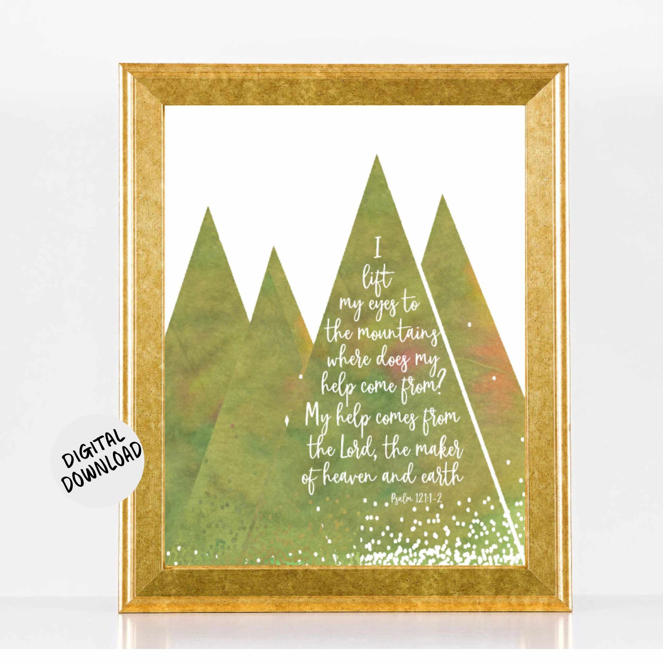 Printable Scripture Poster Psalm 121 1 Watercolor Mountain Etsy