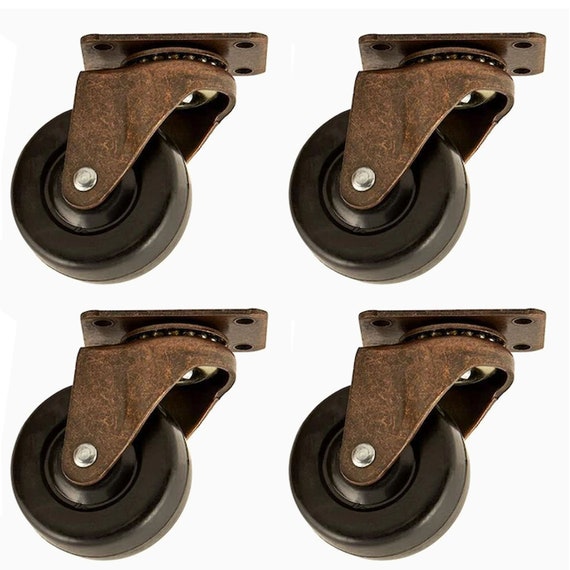 Antique Style Bronze Swivel Casters 4 Pack Rubber Wheel Etsy